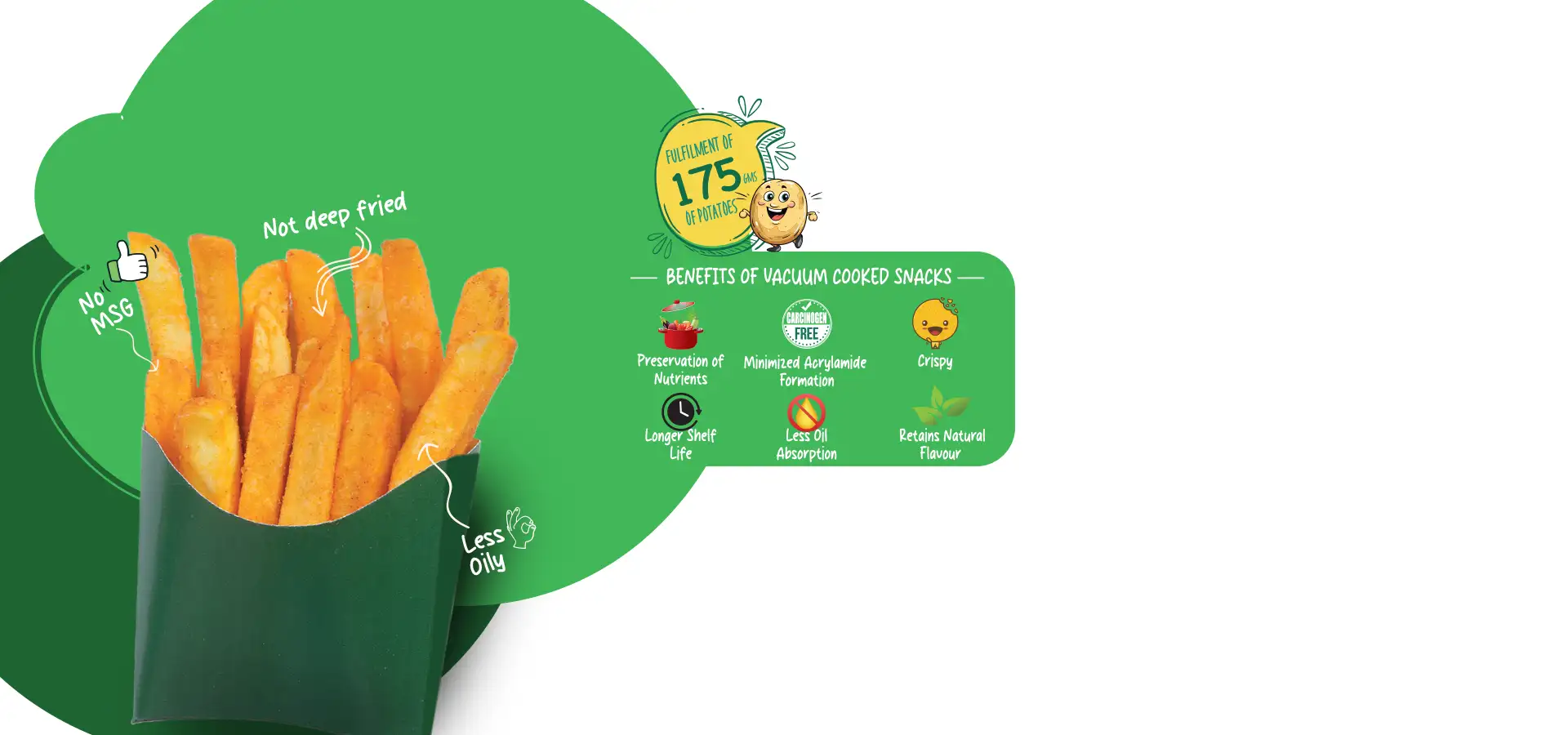 Bursting with the finest ingredients and essential nutrients, our Vakooz Potato Sticks with Momo Chutney flavour deliver the perfect balance of spice and health. Vacuum-cooked to preserve all the vitamins and minerals, each bite is a guilt-free way to fuel your day. Enjoy the natural crunch and tangy momo chutney flavor, knowing you’re snacking on something wholesome and nutritious!